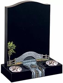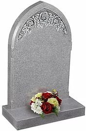 Ogee top headstone incorporating a bridge and carved stream design.